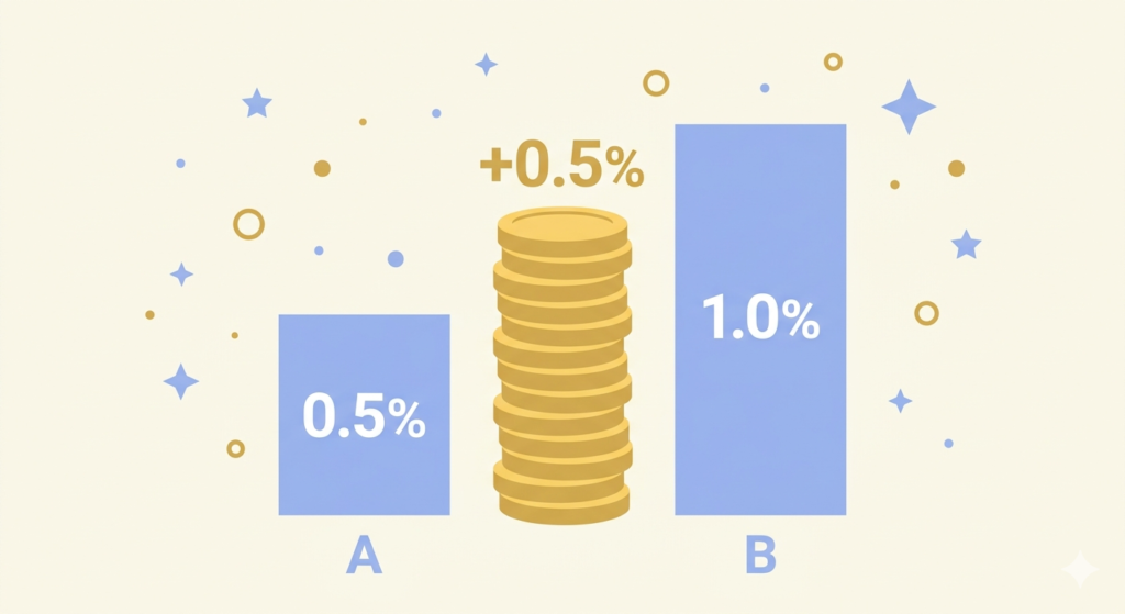 まず結論:0.5%と1.0%の差は4年で約2万円