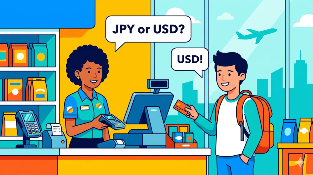 - 現地通貨で決済する:海外のレジで「日本円で払いますか?」と聞かれたら必ず「現地通貨」を選ぶ。日本円を選ぶとDCC(動的通貨変換)で3〜5%上乗せされる