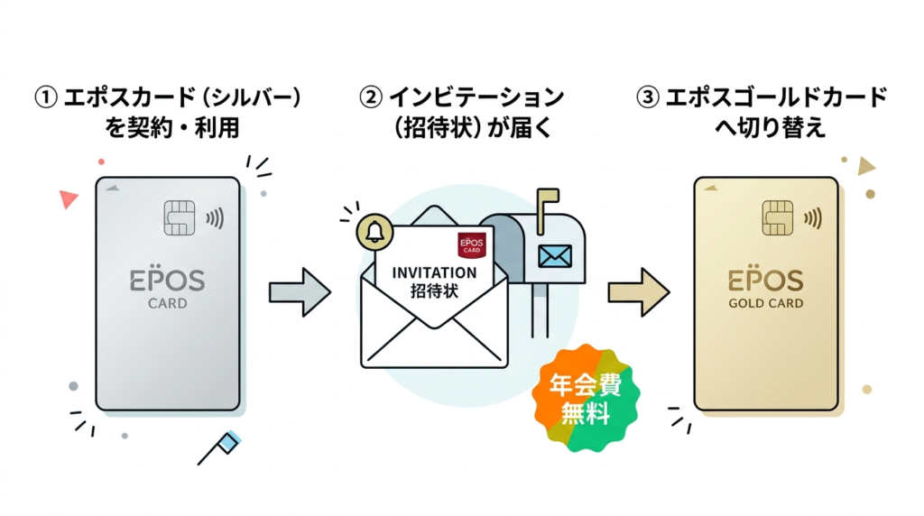 学生のうちにエポスカードを作って使い続ける → 社会人になる頃にインビテーションが届く → 年会費永年無料のゴールドカードを手に入れる。この流れが「隠れ最強」と言われる理由。